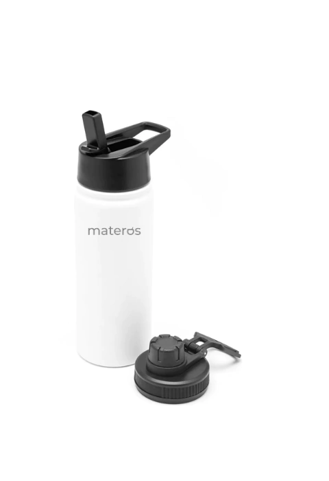 Versátil: Viene equipada con dos tapas intercambiables: una con sorbete y otra con pico, adaptándose a tus necesidades en cualquier momento.